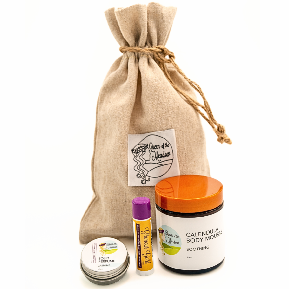 Gift Set Includes: Calendula Body Mousse, Solid Perfume, and Lip Balm