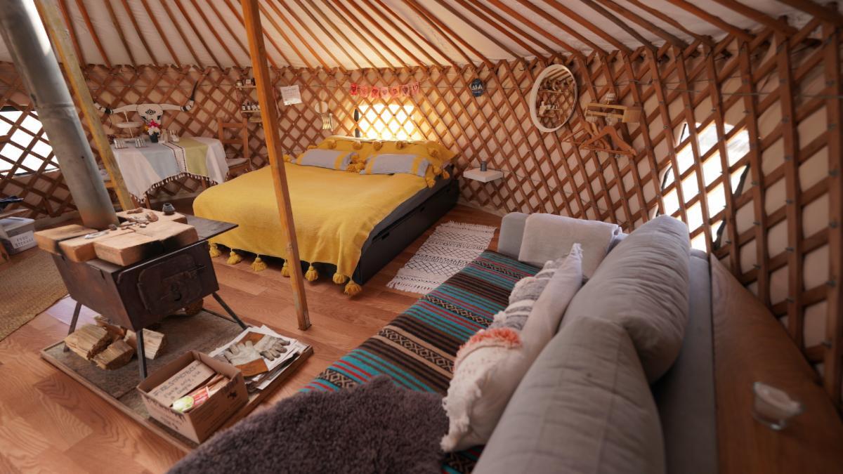 Book our cozy, romantic yurt for Valentine's Day! Equipped with all the essentials: a full kitchen, fireplace, comfy bed & couch.